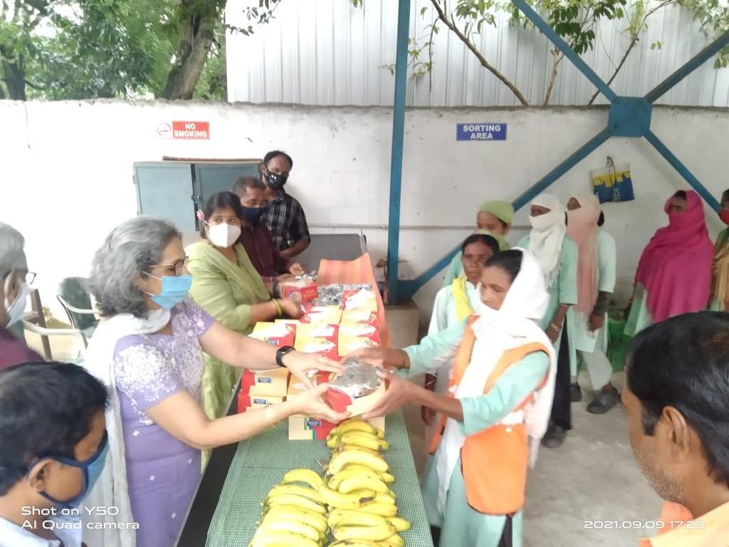 Jamshedpur was recently voted the 3rd cleanest city in India! These workers play an important role in keeping the city clean. SSCTJ recognises their effort and serves a packed meal, one fruit and a packet of biscuits once a fortnight.